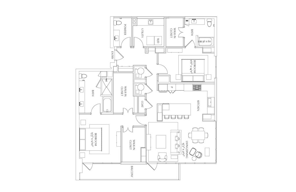 1 Dormitorio, 1 Baño, 921 pies²Galería del Modelo