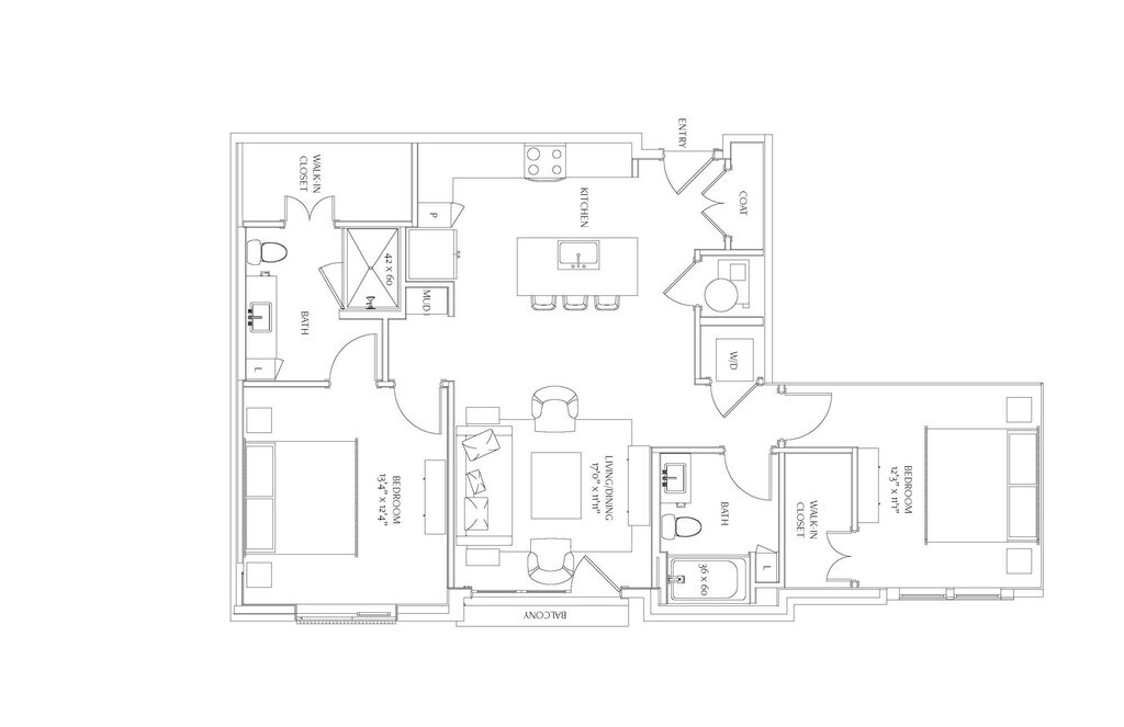 1 Dormitorio, 1 Baño, 644 pies²Galería del Modelo