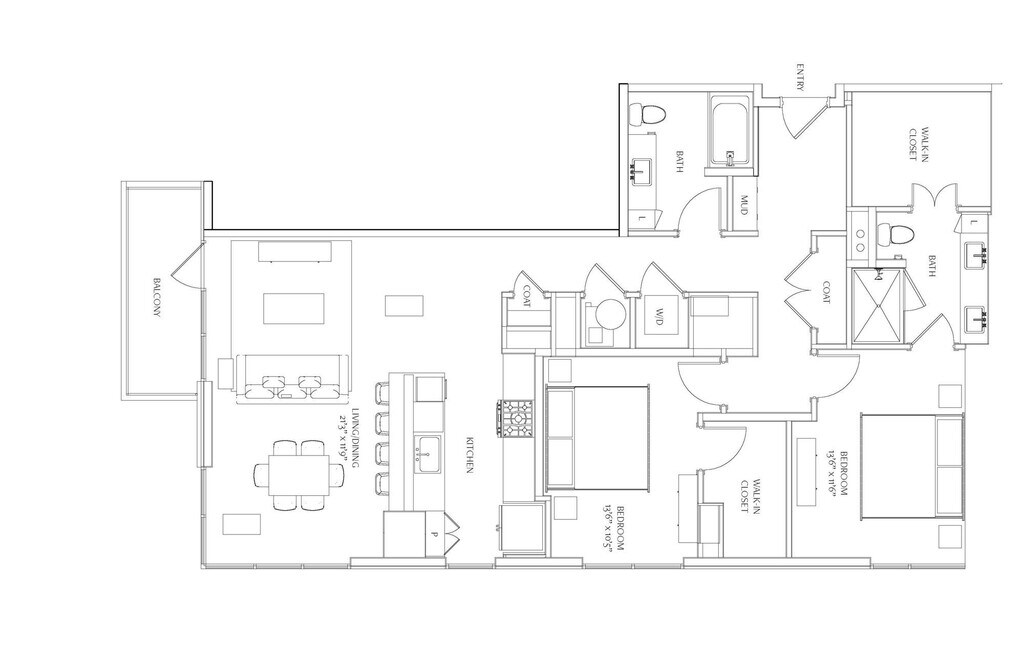 Modelo de apartamento: A21 Dormitorio, 1 Baño, 700 sq ftNo Disponible![]()