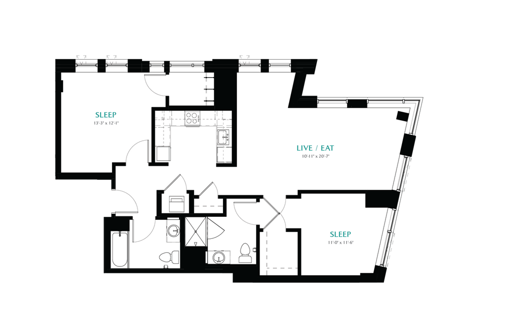 B1 - Plano 3 Unidad de apartamento: B1-701Modelo de apartamento: B1$4,9341 Dormitorio, 1 Baño, 646 sq ftDisponible AhoraPlano: F6