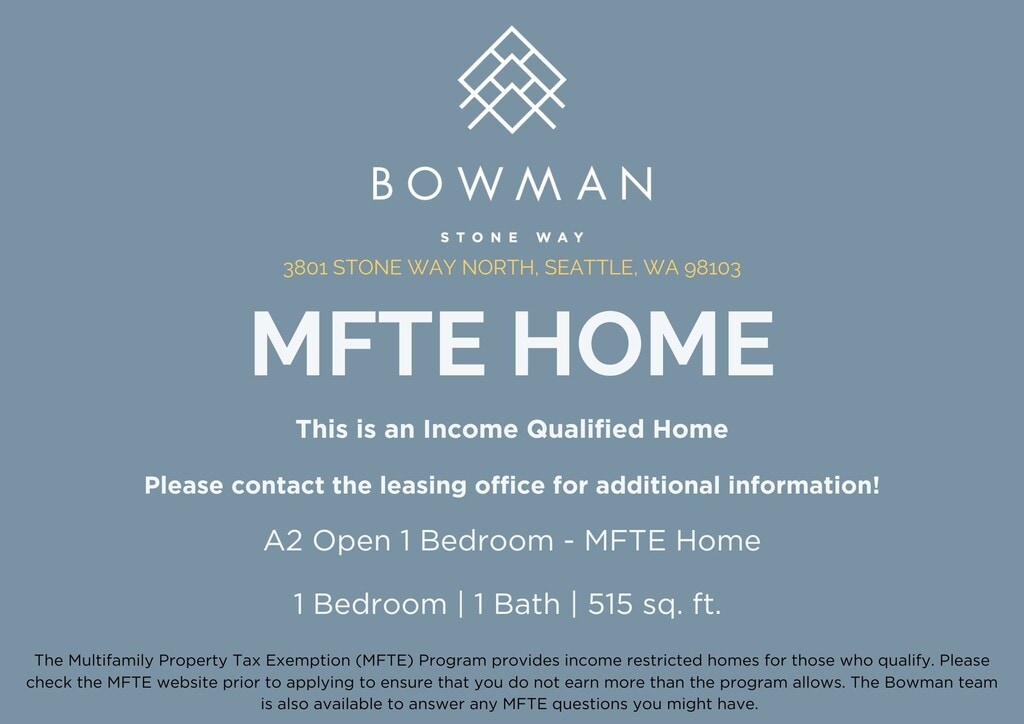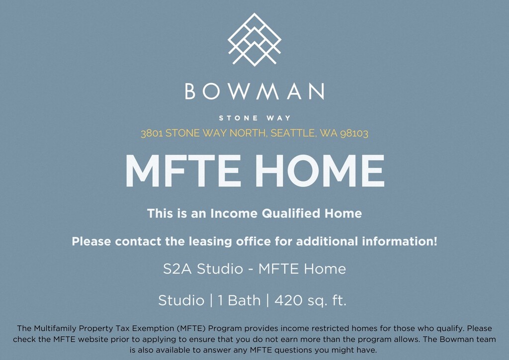 Bowman se encuentra en el Barrio Fremont y el código postal 98103 de Seattle, WA. Esta comunidad está gestionada profesionalmente por Legacy Partners Residential