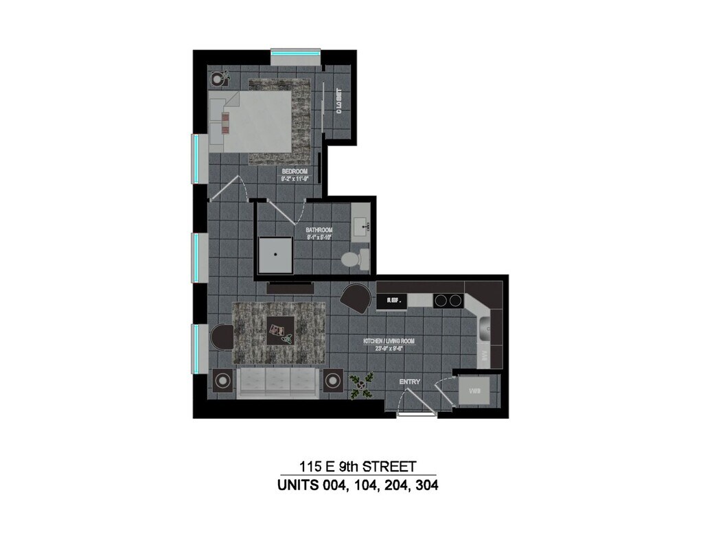 Unidad de apartamento: Schwab Industrial-004Modelo de apartamento: 1BR/1.0BA1 Dormitorio, 1 Baño, 420 sq ftDisponible Ahora![]()