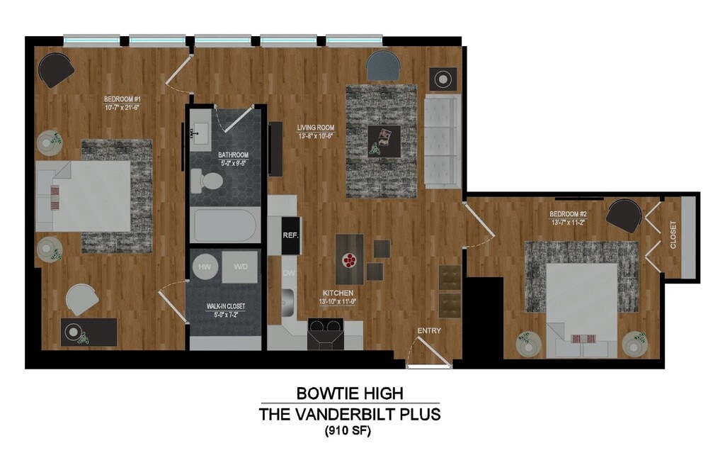 Unidad: Bowtie High-201 - Imagen 10 Unidad de apartamento: Bowtie High-202Modelo de apartamento: 2BR/1.0BA2 Dormitorios, 1 Baño, 910 sq ftDisponible July 1, 2026![]()