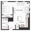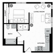Modelo de apartamento: 1x1 G$1,7991 Dormitorio, 1 Baño, 578 sq ftDisponible Ahora![]()