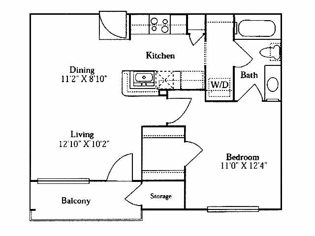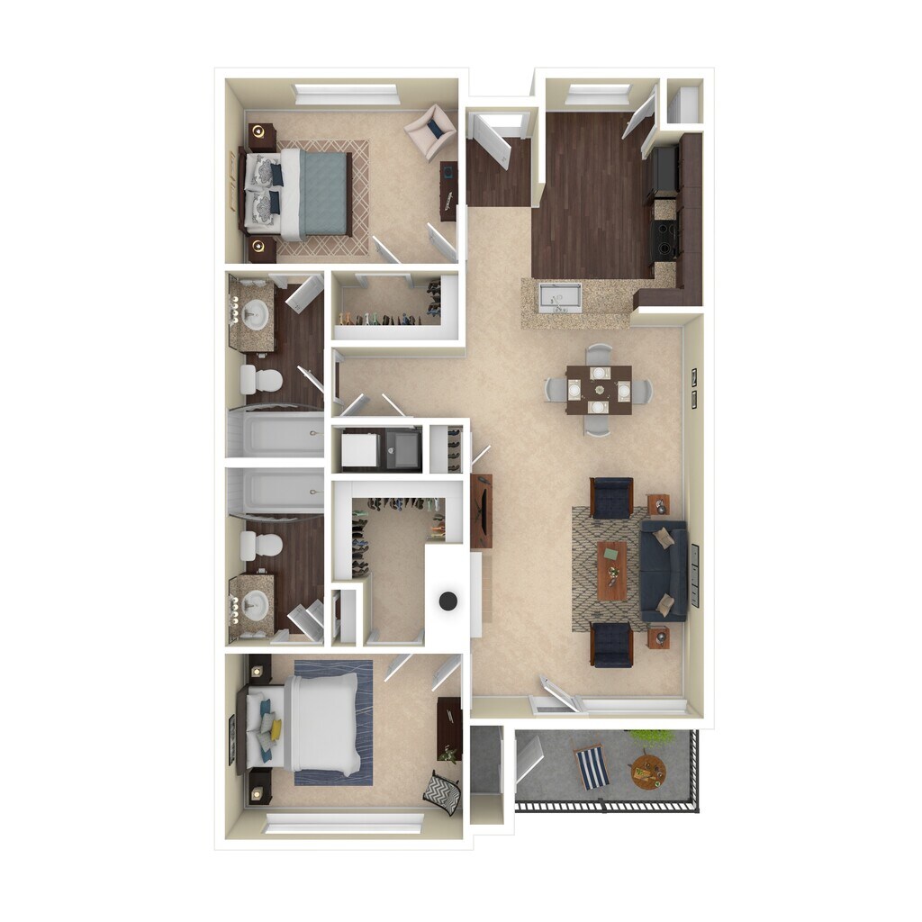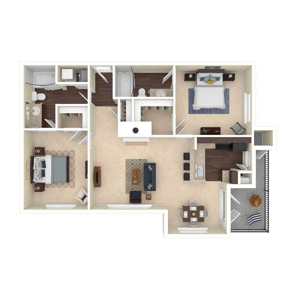 Modelo de apartamento: A2Desde $1,5011 Dormitorio, 1 Baño, 629 sq ftDisponible Ahora![]()