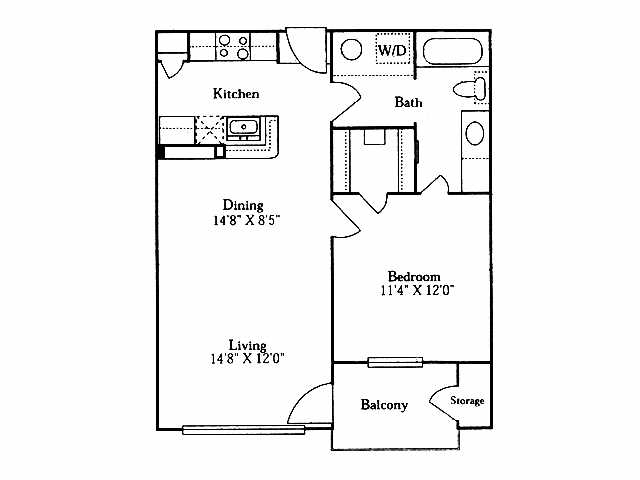 Modelo de apartamento: A4Desde $1,7711 Dormitorio, 1 Baño, 785 sq ftDisponible Ahora![]()