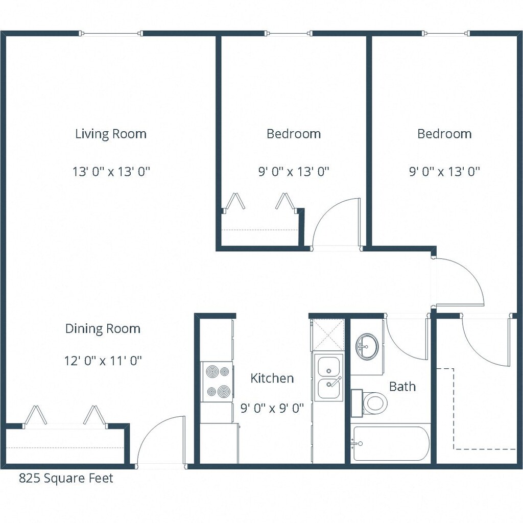 2 Dormitorios, 1 Baño, 825 pies²Disponible AhoraGalería del Modelo