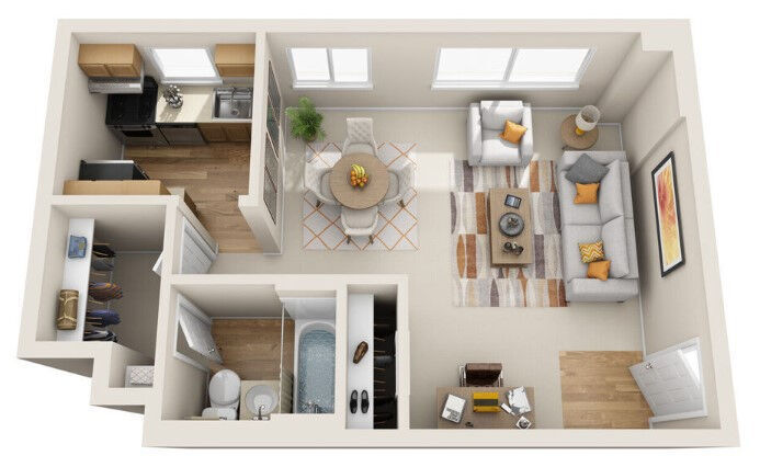 1 Dormitorio, 1 Baño, 660 pies²Disponible AhoraGalería del Modelo