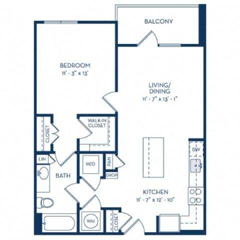 Estudio, 1 Baño, 606 pies²Disponible AhoraGalería del Modelo