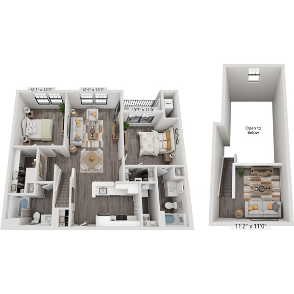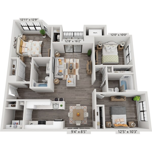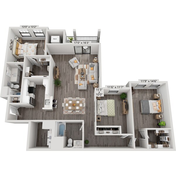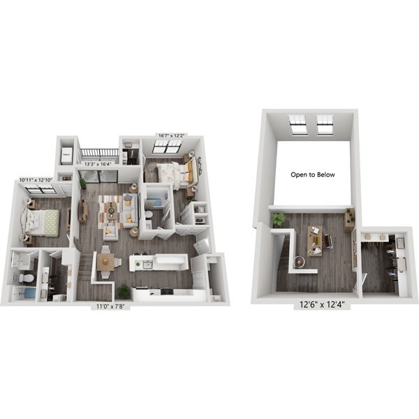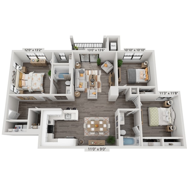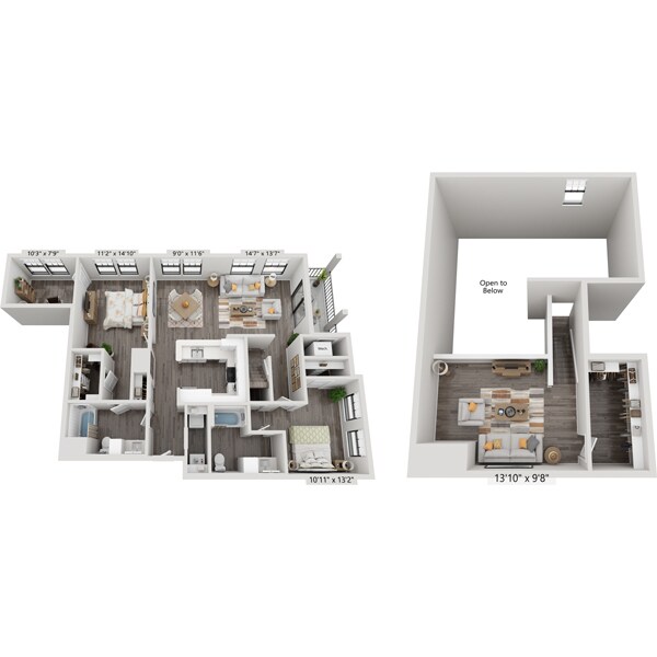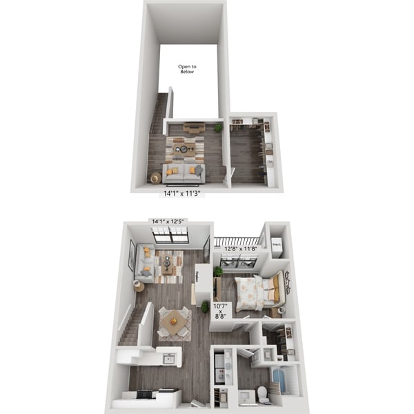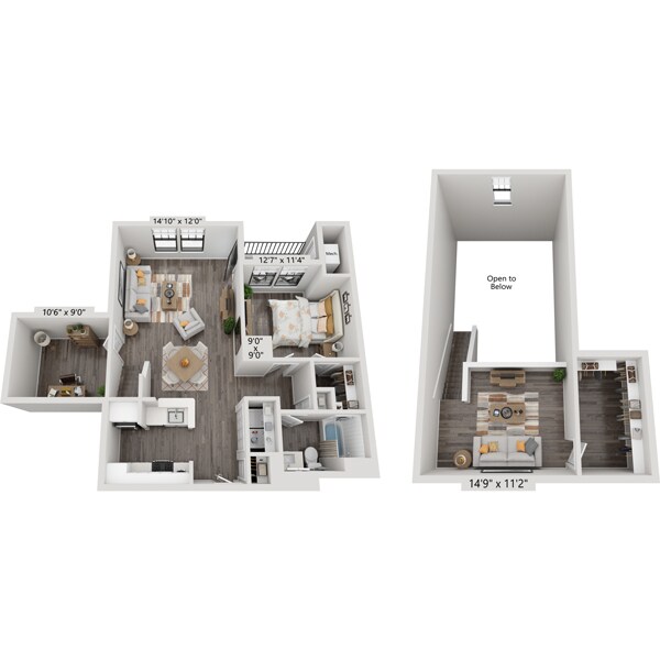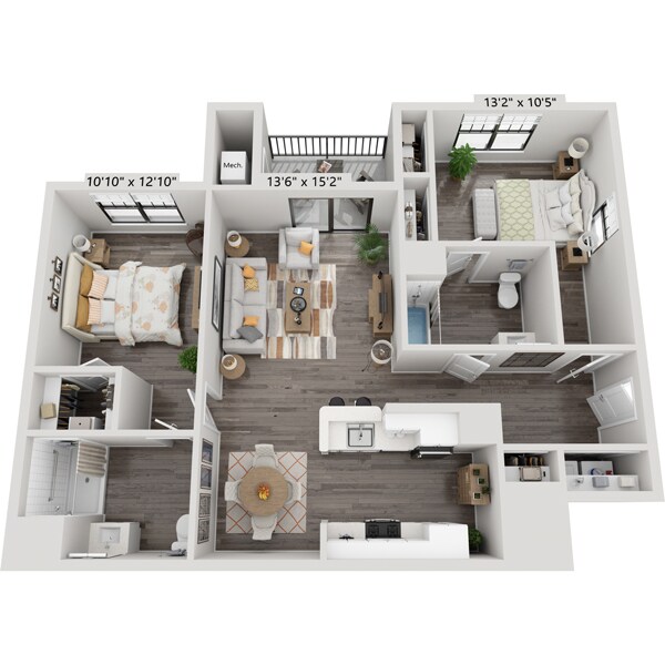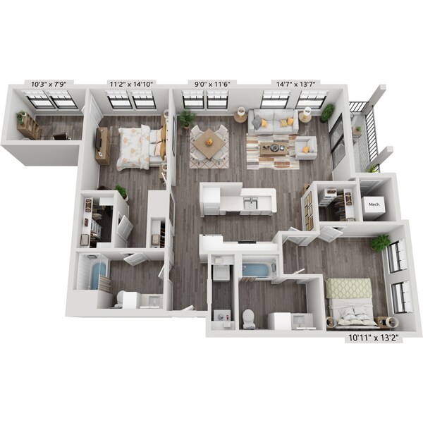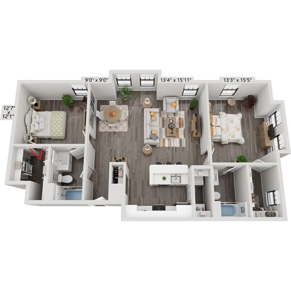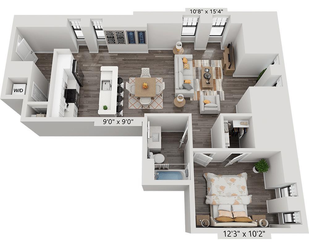 Modelo de apartamento: One Bedroom A1C2Desde $2,2601 Dormitorio, 1 Baño, 805 sq ftDisponible Ahora![]()