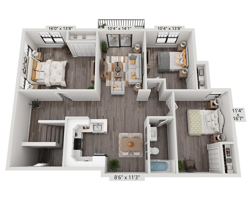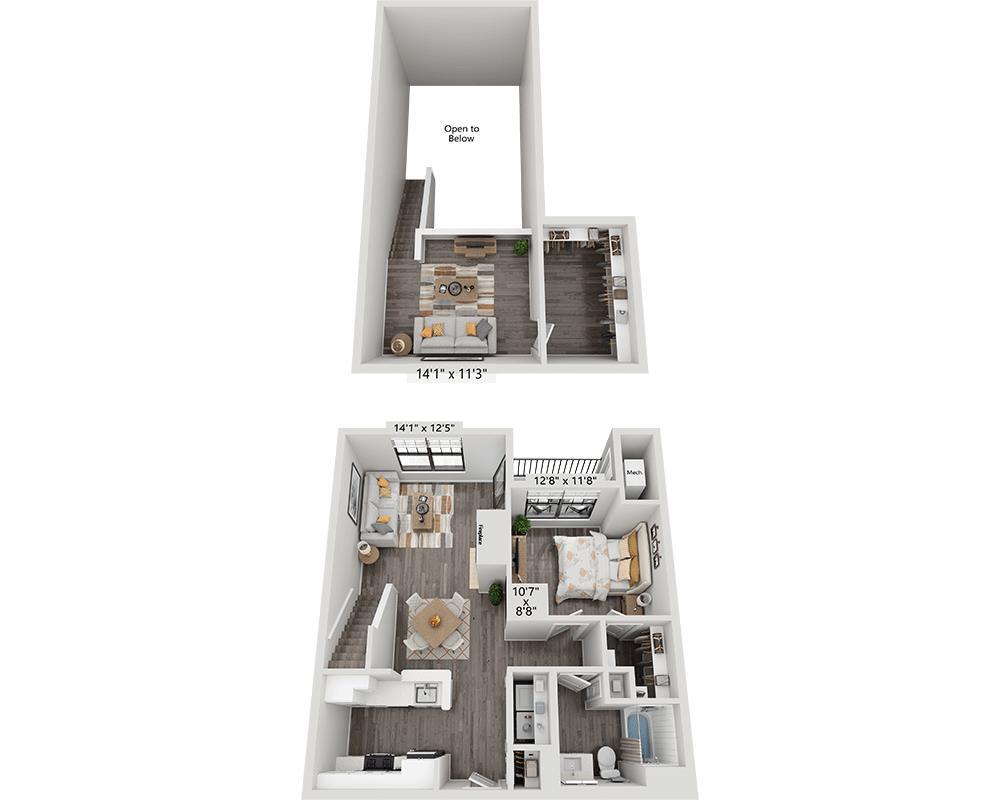 1 Dormitorio, 1 Baño, 1198 pies²Precio Mensual TotalDisponible AhoraGalería del Modelo