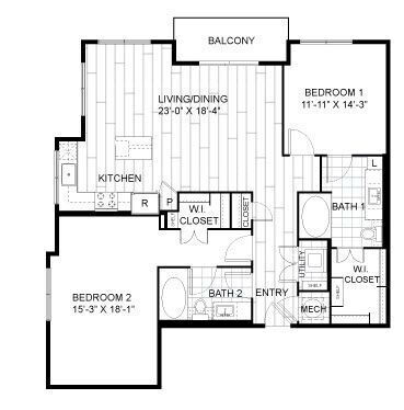 Modelo de apartamento: 1U$3,6551 Dormitorio, 1 Baño, 1051 sq ftDisponible Ahora![]()