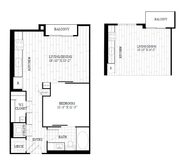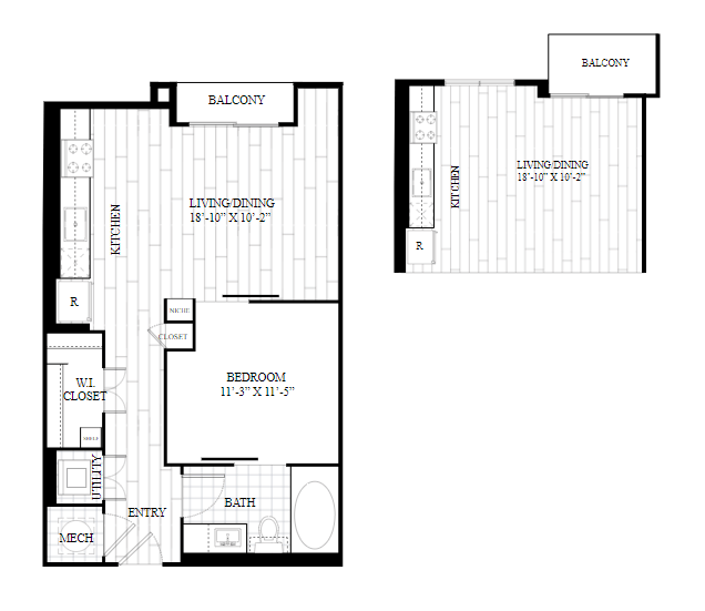 1 Dormitorio, 1 Baño, 743 pies²Disponible AhoraGalería del Modelo