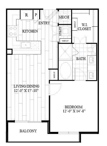 Modelo de apartamento: P1M$2,2531 Dormitorio, 1 Baño, 651 sq ftDisponible Ahora![]()