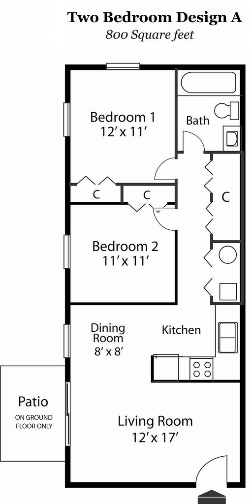Modelo de apartamento: 2X12 Dormitorios, 1 Baño, 800 sq ftDisponible Ahora![]()
