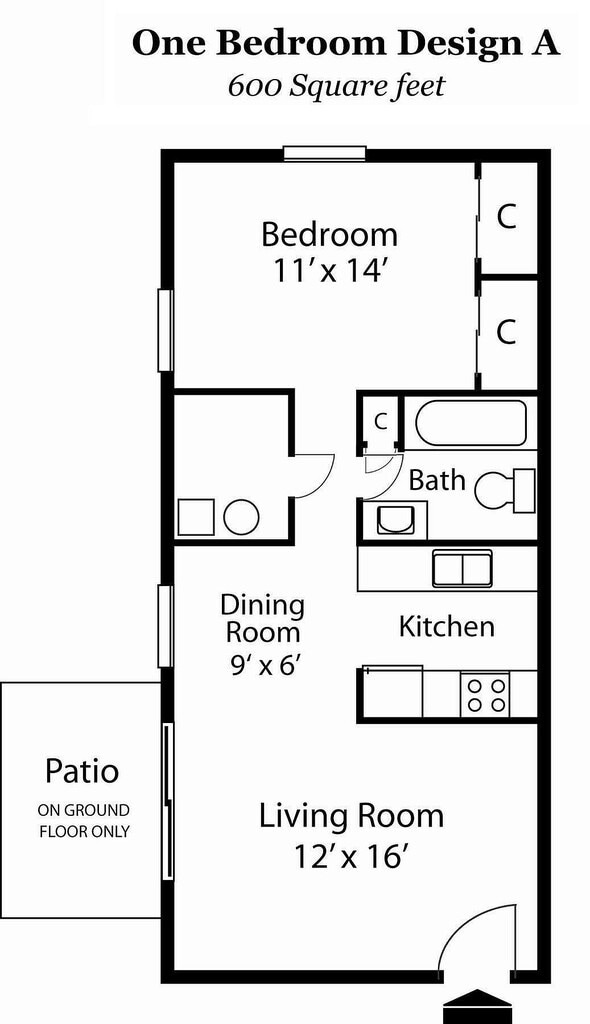 Modelo de apartamento: 1X11 Dormitorio, 1 Baño, 600 sq ftNo Disponible![]()