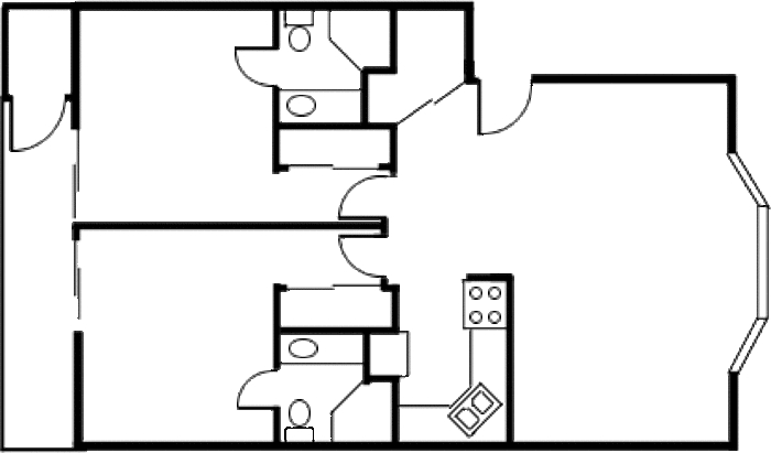 Modelo de apartamento: 2 bedroom/1 bath2 Dormitorios, 1 Baño, 783 sq ftNo Disponible2 bedroom/1 bath - Plano 1 2 bedroom/ 1 bath