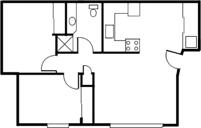 1 Dormitorio, 1 Baño, 723 pies²Galería del Modelo