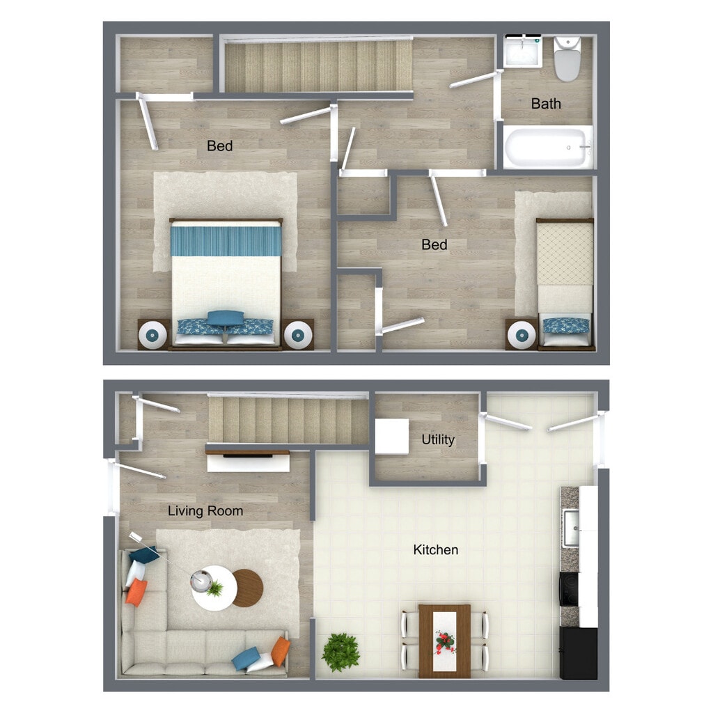 2 Dormitorios, 1 Baño, 1034 pies²Galería del Modelo