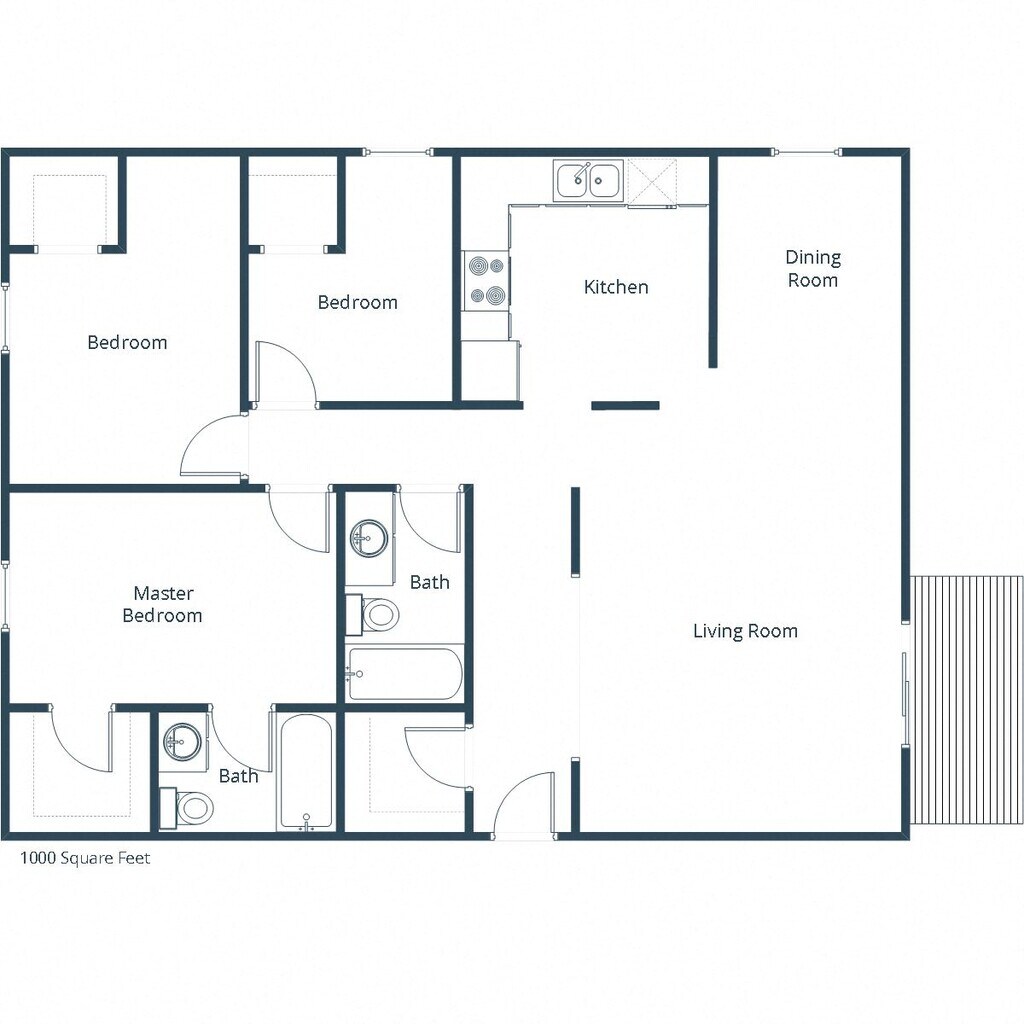 3 Dormitorios, 2 Baños, 1000 pies²Galería del Modelo