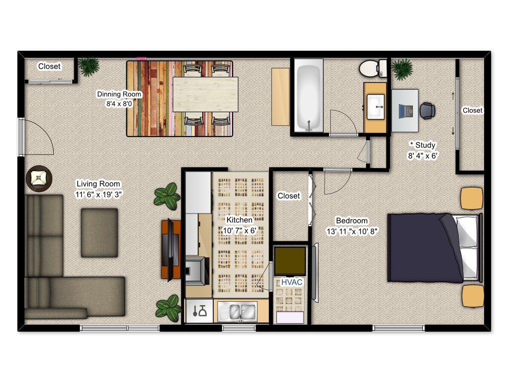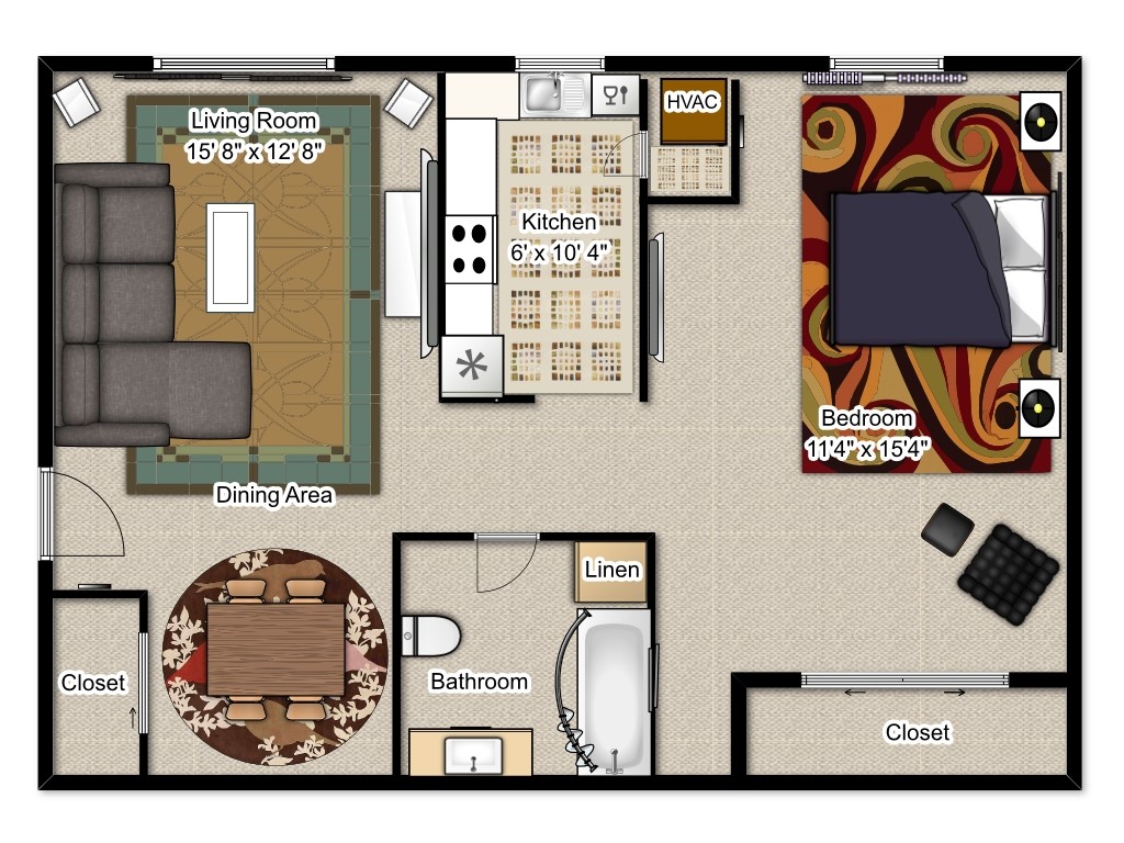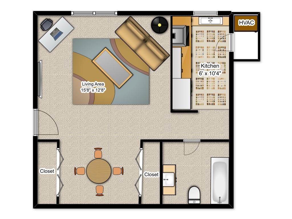 Efficiency Apartment - Plano 2 Studio Upgrade