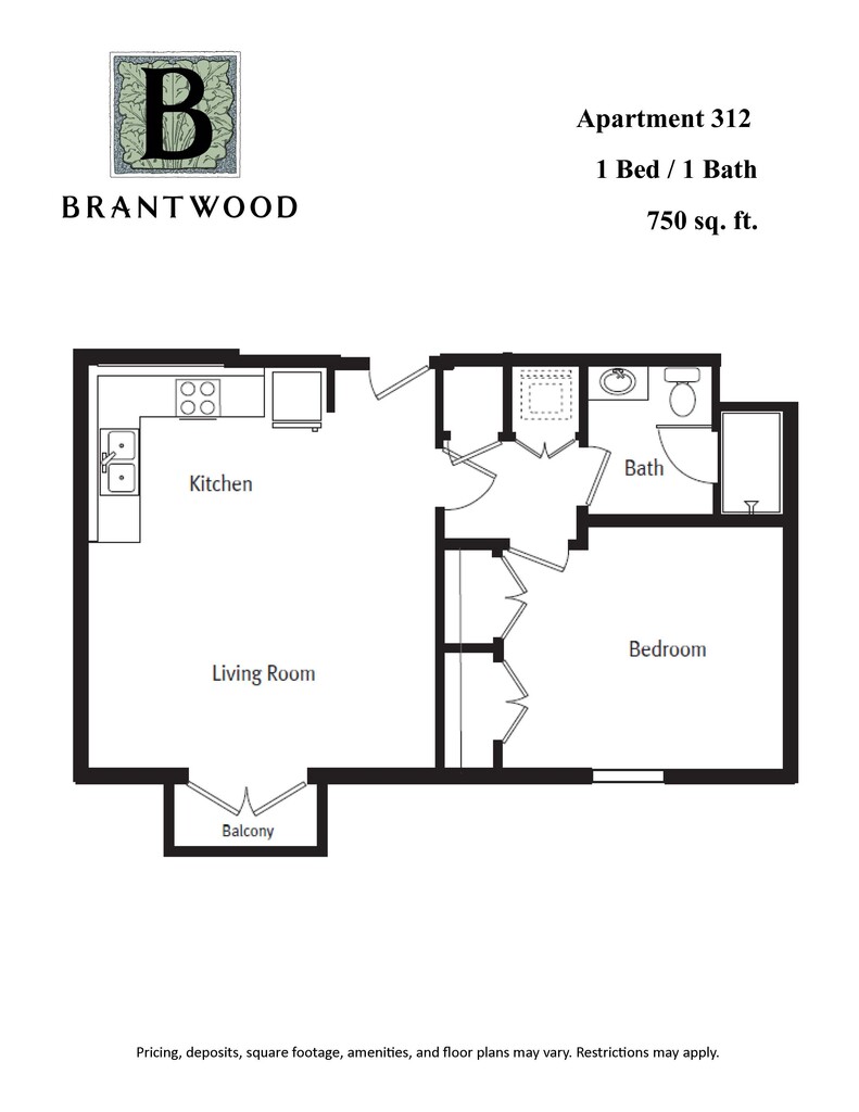 1 Dormitorio, 1 Baño, 750 pies²Galería del Modelo