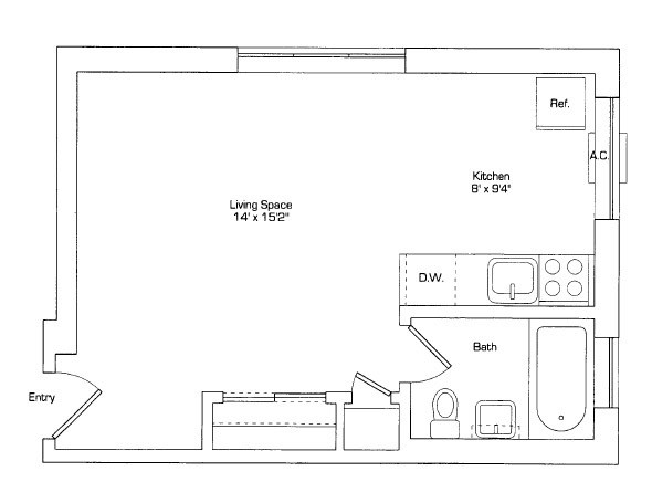 Modelo de apartamento: One Bedroom Small$1,9001 Dormitorio, 1 Baño, 450 sq ftNo Disponible![]()