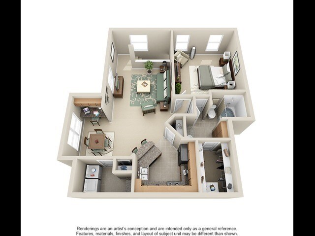 Modelo de apartamento: A1Desde $1,1521 Dormitorio, 1 Baño, 658 sq ftDisponible Ahora![]()