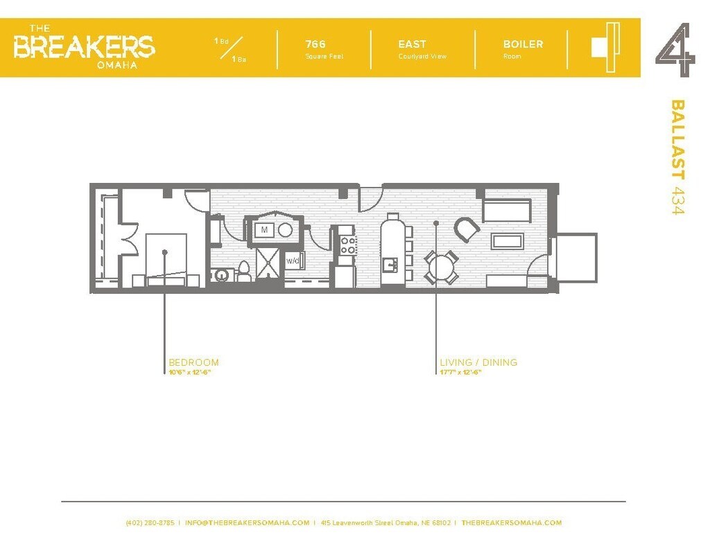 Ballast - Plano 7 Unidad de apartamento: 434Modelo de apartamento: Ballast$1,2031 Dormitorio, 1 Baño, 766 sq ftDisponible December 6, 2025PlanosFotos![]()