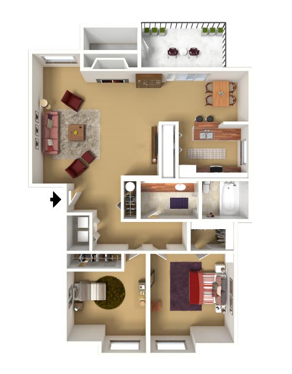 2 Dormitorios, 2 Baños, 1030 pies²Disponible Oct 18Galería del Modelo