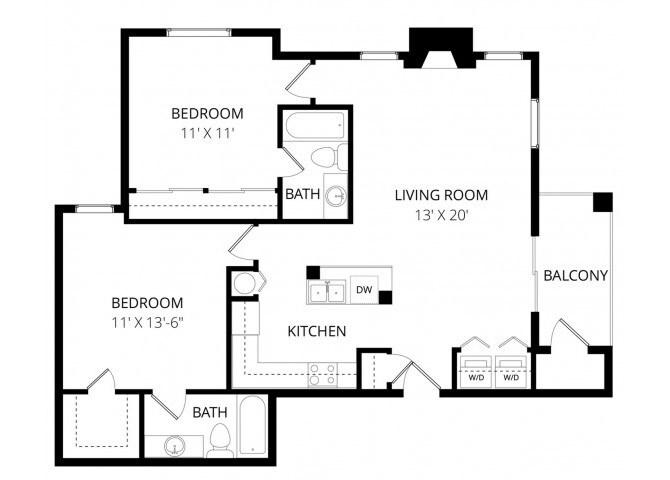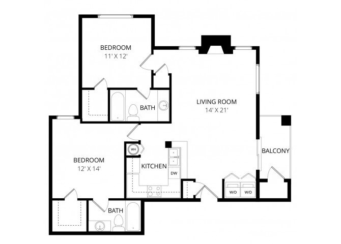 1 Dormitorio, 1 Baño, 687 pies²Disponible AhoraEl más grandeEsta opción tiene las unidades más grandes para este modeloGalería del Modelo