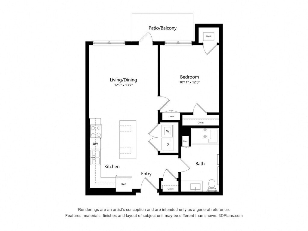 One Bedroom E (ADA) - Plano 2 Unidad de apartamento: 620Modelo de apartamento: One Bedroom E (ADA)$1,4221 Dormitorio, 1 Baño, 663 sq ftDisponible AhoraOne Bedroom C