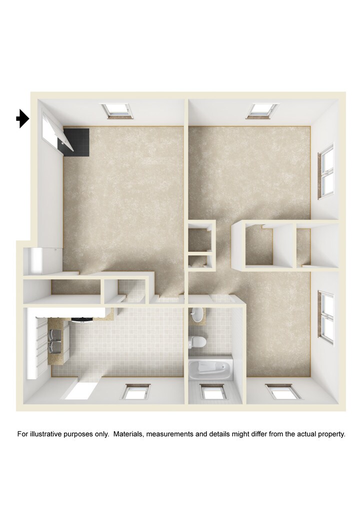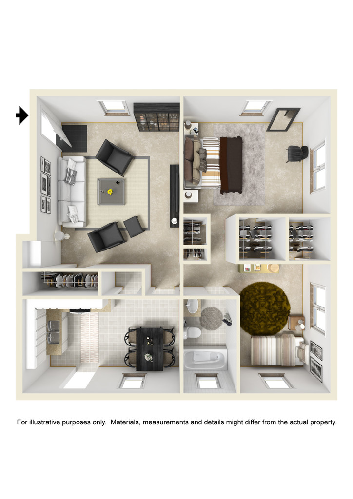 1 Dormitorio, 1 Baño, 875 pies²Disponible AhoraGalería del Modelo