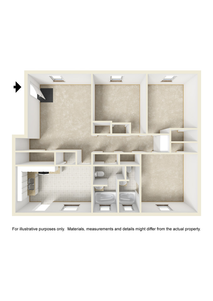 Two Bedroom, Two Bathroom - Plano 1 3 Dormitorios
