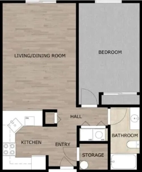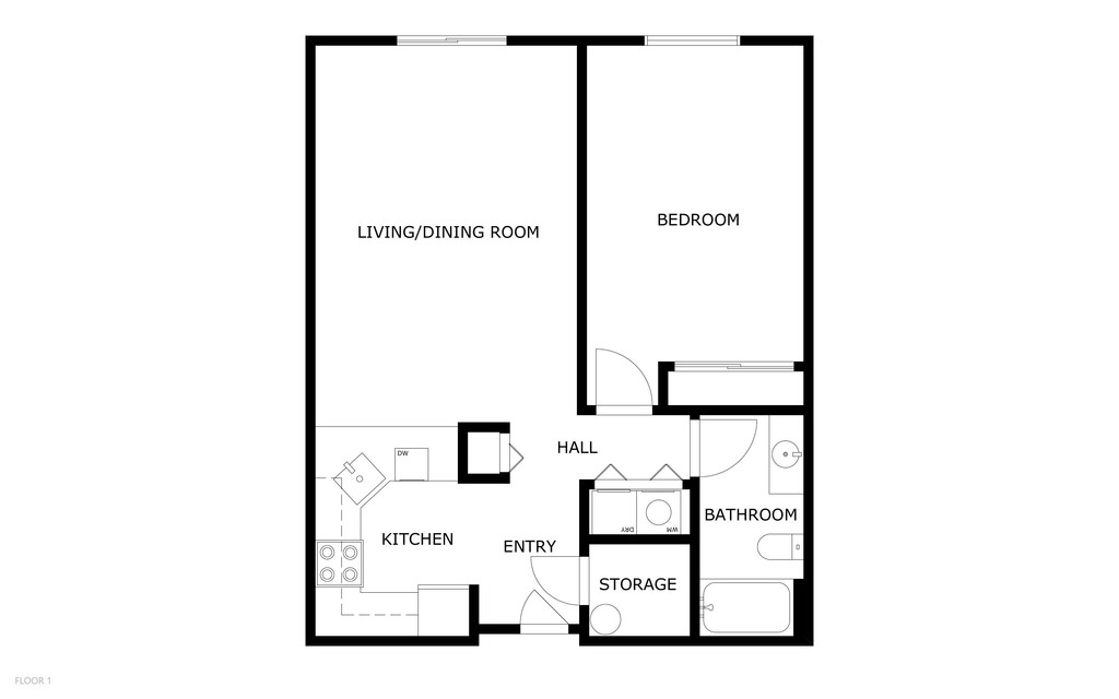 1BD, 1BTH - Plano 3 Unidad de apartamento: 315Modelo de apartamento: 1BD, 1BTH1 Dormitorio, 1 Baño, 850 sq ftDisponible Ahora2 Dormitorios
