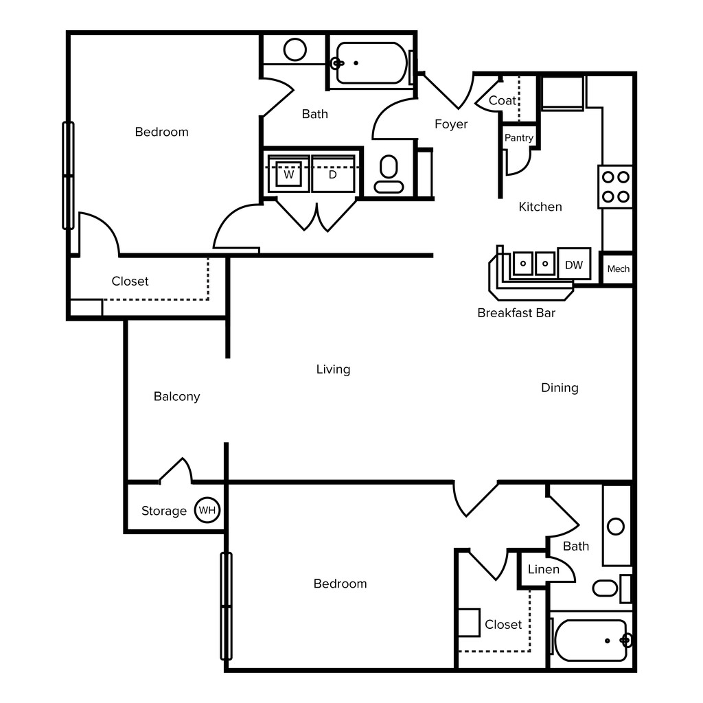 2 Dormitorios, 2 Baños, 1280 pies²Disponible Oct 26El más grandeEsta opción tiene las unidades más grandes para este modeloGalería del Modelo