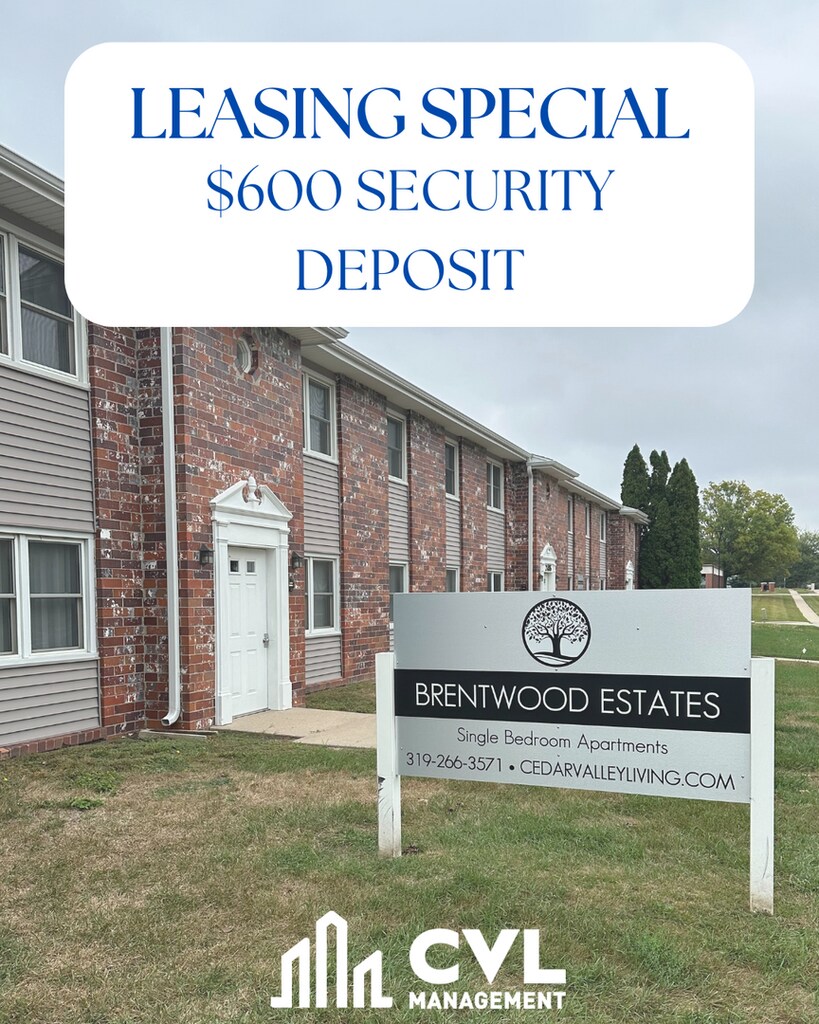 La promoción que hay actualmente para la renta en Brentwood Estates - Furnished & Unfurnished Apartments es: $600 Security Deposit + 1/2 off 1st Month's Rent!~~Don't miss out on this amazing opportunity! Now offering a reduced security deposit of $600 and 1/2 off 1st month's rent! Apply today!