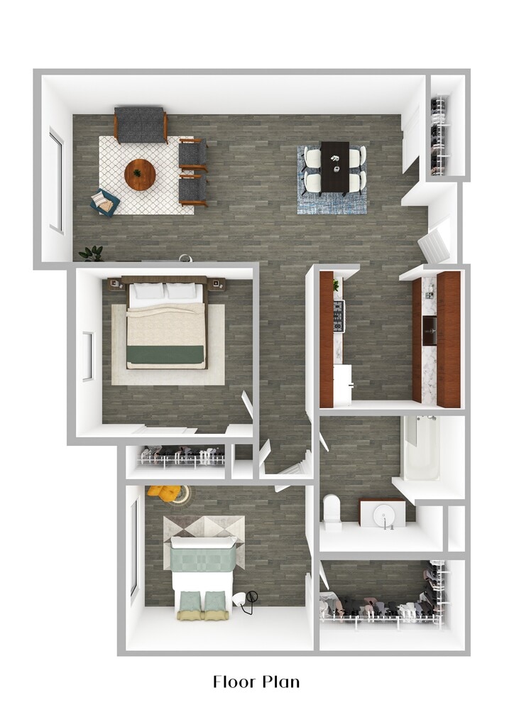 2 Dormitorios, 1 Baño, 728-829 pies²Disponible AhoraGalería del Modelo