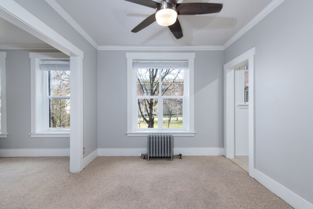 August 3, 2015When we moved in we began renting a one bedroom apartment, which had a spacious bedroom, tiny bathroom, plenty of closet space, a decent kitchen with no dinning area and a good size living room. Then, we moved across the hall to a two bedroom. It has a large dinning area, small bathroom with even less storage than our last apartment. It also has a small kitchen with a sizable amount of cupboard space to make up for the lack of counter space, both bedrooms are a good size but lack storage space, ...and a decently shaded view of the back yard. My only real qualms are with the management, which seems to be very busy and has yet to finish my repair requests, after a month of waiting. I have been placated with small fixes in an inconsistent manner and am about ready to do the repairs myself. On the plus side, water, sewer, garbage, and heating are included. Steam heat throughout the building so in the winter I'm never without heat, unless the boiler breaks down; which also makes showers a bit difficult since the water gets turned off throughout the building for maintenance. But, we get on site laundry so I don't have to pack up my clothes and haul them down the street. All in all its nice in its own way!Property Manager Responded