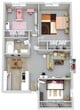 2 Beds | 1 Bath - Plano 1 ![]()