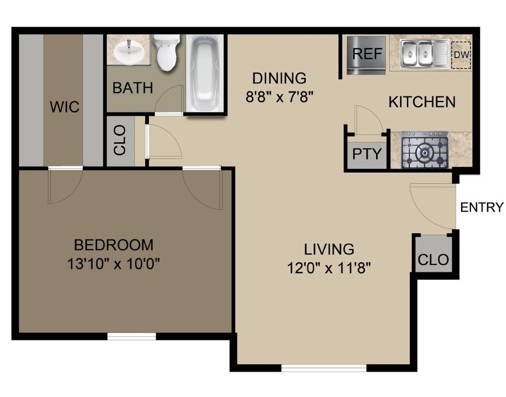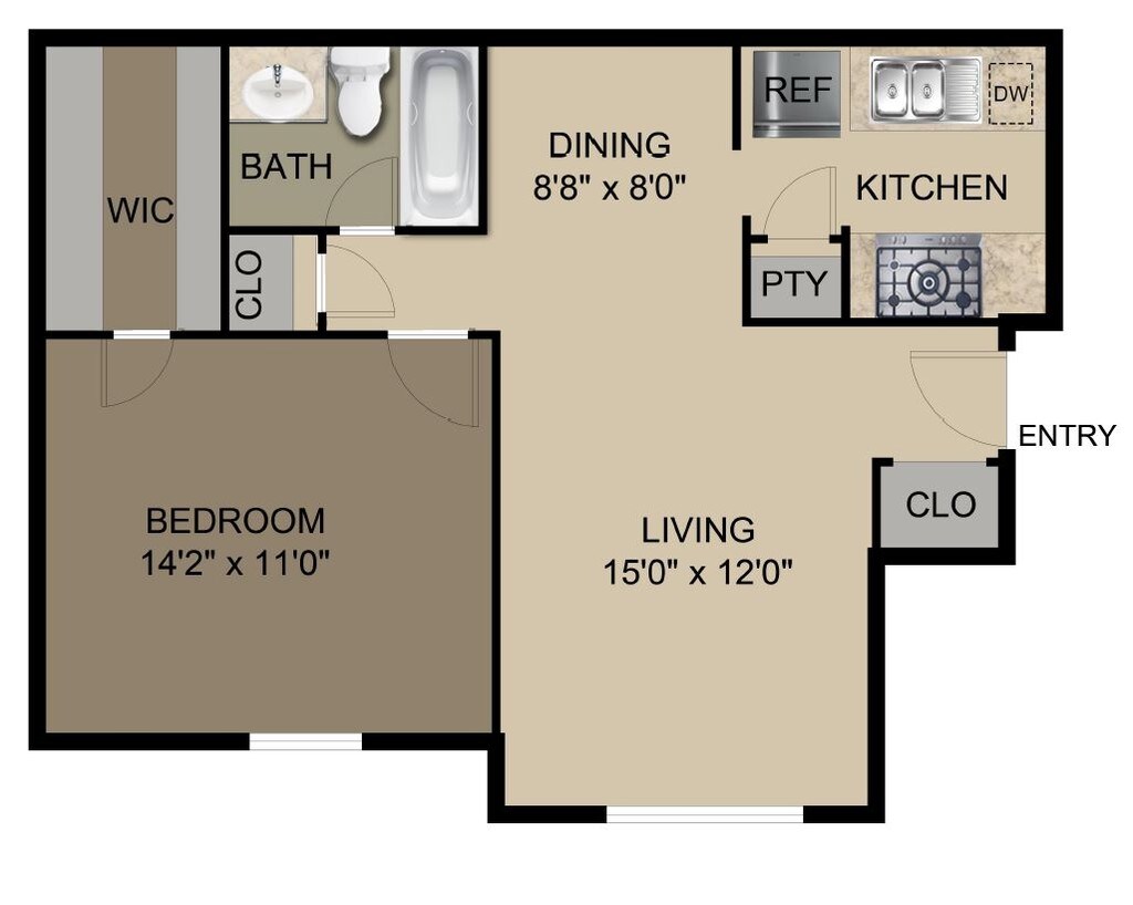 Modelo de apartamento: A21 Dormitorio, 1 Baño, 682 sq ftNo Disponible![]()