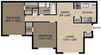 Modelo de apartamento: B22 Dormitorios, 2 Baños, 936 sq ftNo Disponible![]()