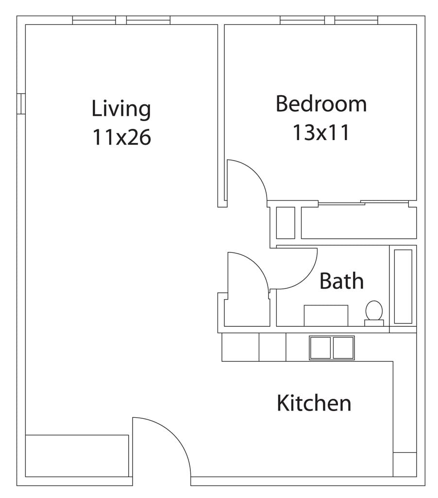 1 Dormitorio, 1 Baño, 543-590 pies²Disponible AhoraGalería del Modelo