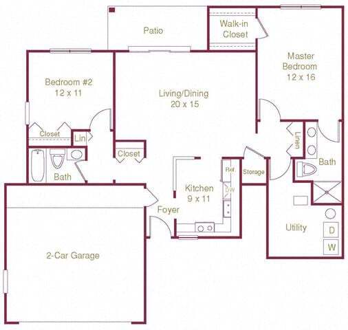 Modelo de apartamento: The CarringtonLlame para Precios2 Dormitorios, 2 Baños, 1180 sq ftNo DisponibleThe Carrington - Plano 1 The Lexington
