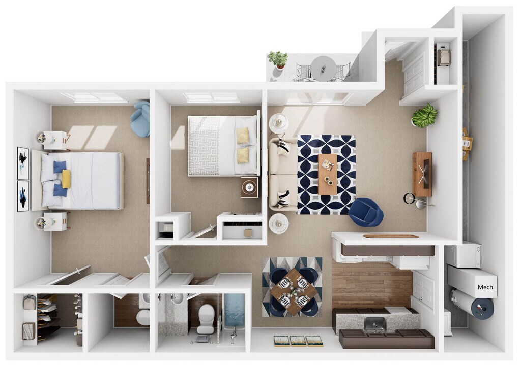 Modelo de apartamento: BridgewaterDesde $1,1491 Dormitorio, 1 Baño, 850 sq ftDisponible Ahora![]()