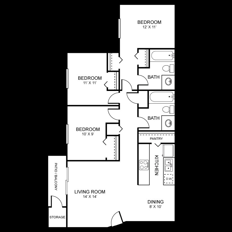 Modelo de apartamento: 1BR Patio$9751 Dormitorio, 1 Baño, 656 sq ftDisponible January 11, 2026PlanosFotos![]()