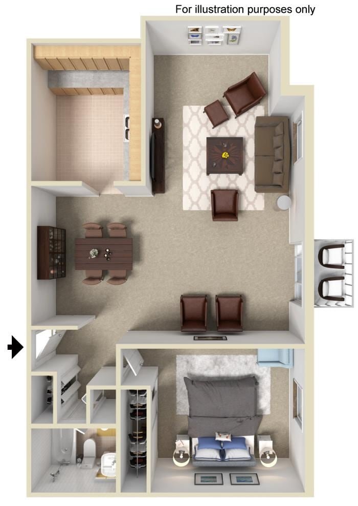 Modelo de apartamento: Northpoint 1Desde $1,0751 Dormitorio, 1 Baño, 590 sq ftNo Disponible![]()