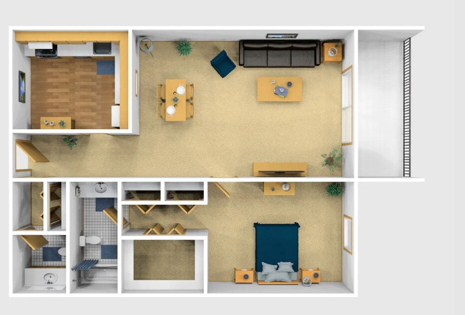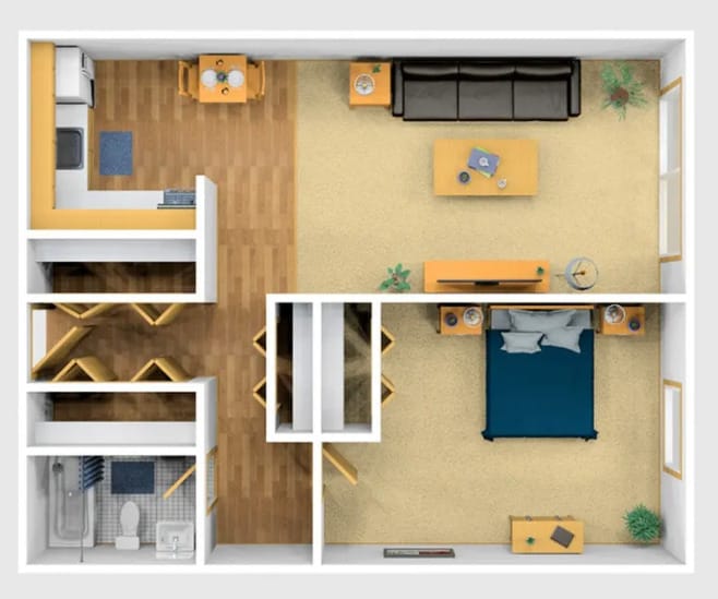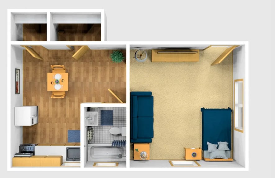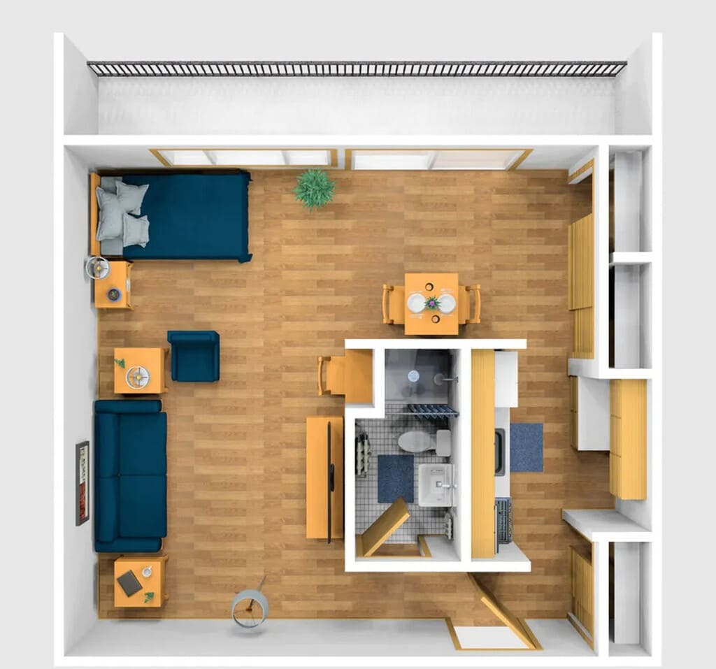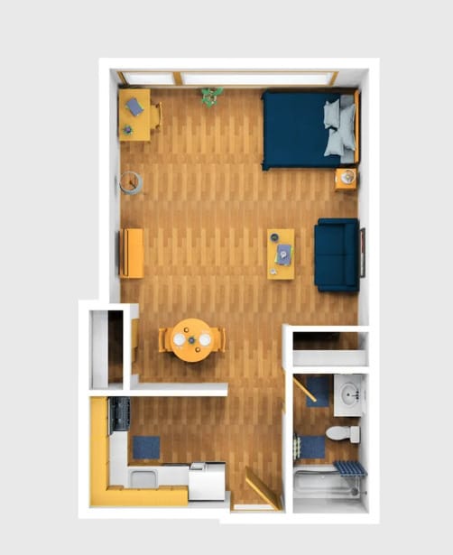 Modelo de apartamento: Studio Apt, 1 BathDesde $1,161Estudio, 1 Baño, 489 sq ftDisponible Ahora![]()
