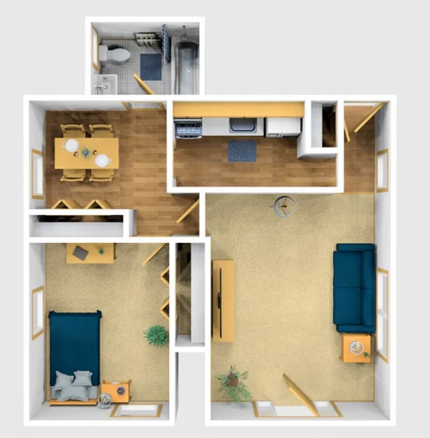 1 Bedroom, 1 Bath - Plano 6 ![]()