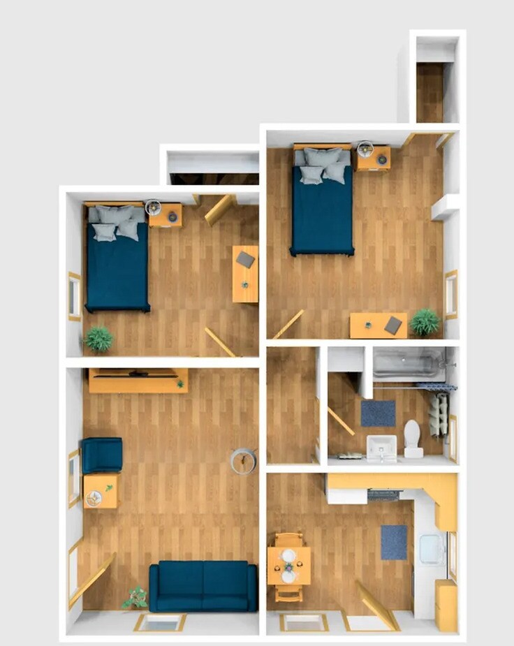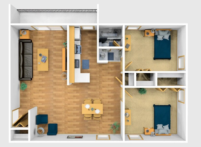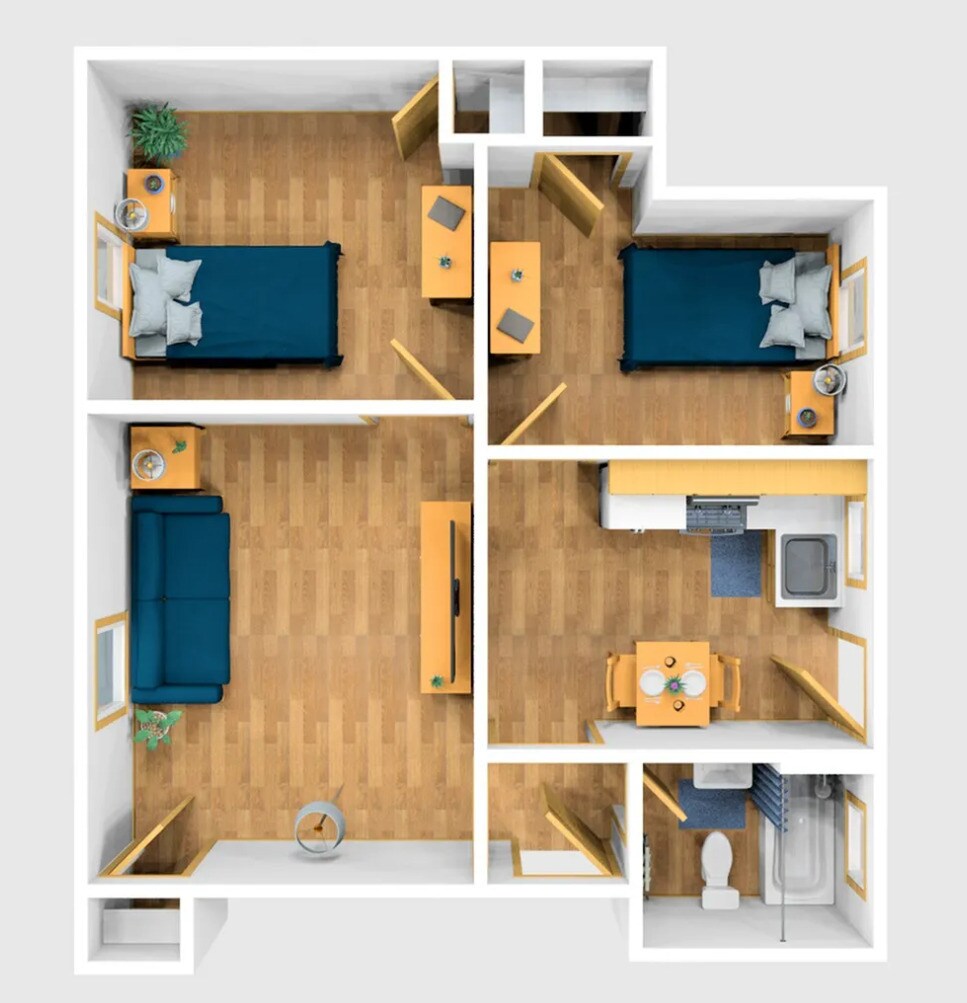 2 Dormitorios, 1 Baño, 532-820 pies²Disponible AhoraGalería del Modelo